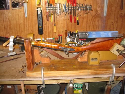 I can place a 'button' into the front hole of the toe plate for the rear attachment but don't have any ideas for the front. The type that replaces the ramrod ferrule with one that has a post for a swivel ala T/C Hawken won't work without changing the looks of the gun.