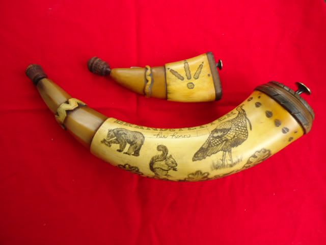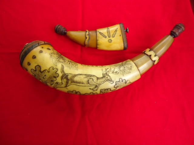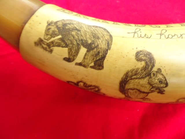 I don't do much of the more detailed and shadowing depictions anymore, mainly because most reenactors want the more historic styles of engraving, but I enjoy doing it now and then! __ The horns were designed by him and he wanted me to engrave animals, that he hunted !