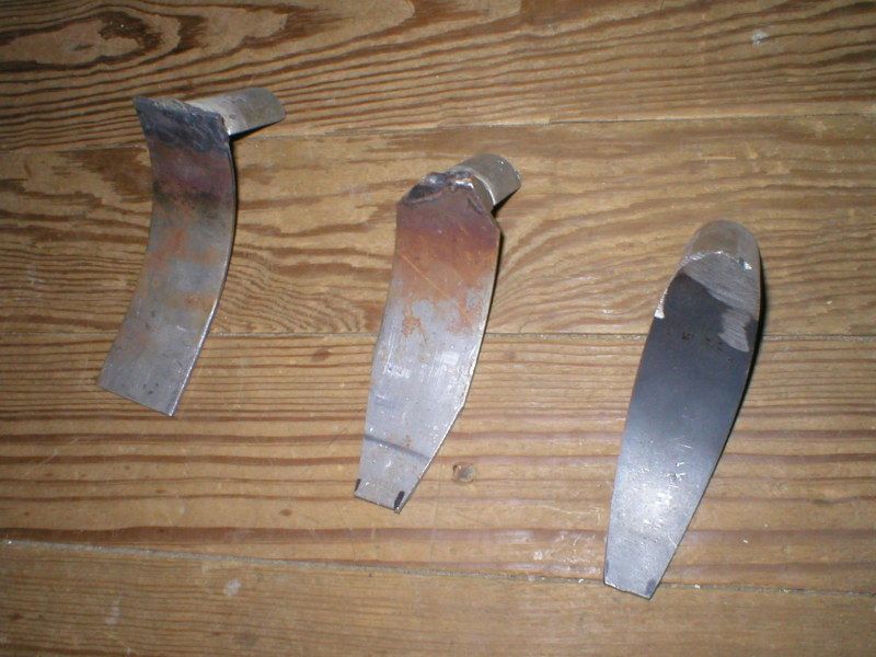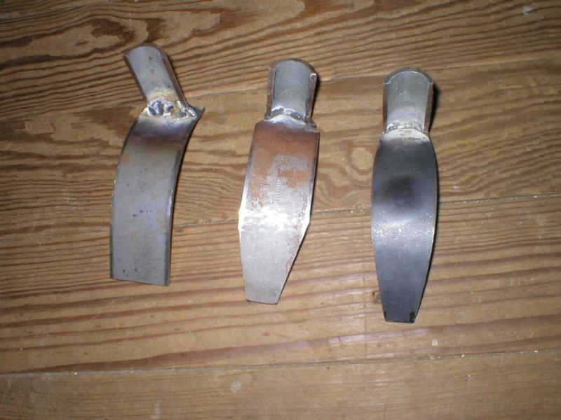 First plate in the first two photos is one that has been freshly-welded, shown from the outside and inside. The second plate has had excess steel removed from the 1 1/2" wide plate; the third one has been ground to very close to finished shape.