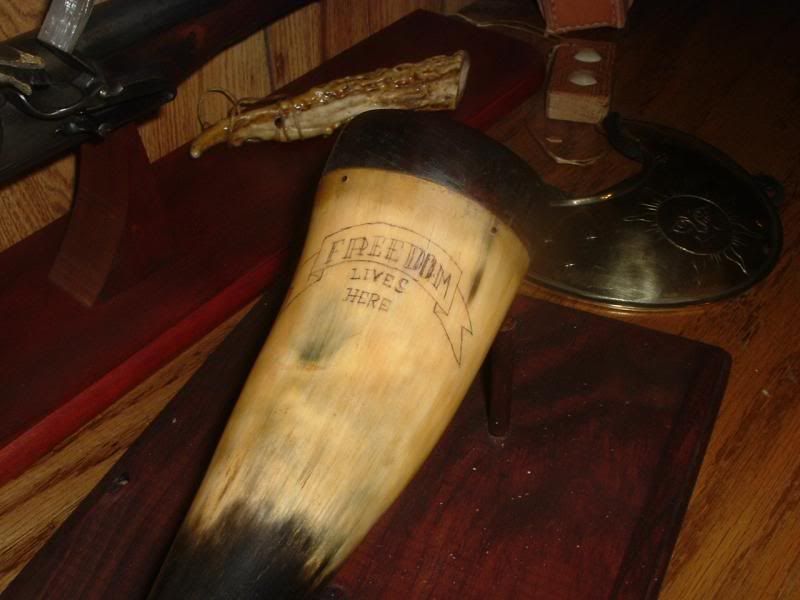I put this horn together for a little change of pace. I made the applied tip and base plug from some scrap cherry I had left from my pistol build.  I made the staples from nails and used chocolate leather stain for the tip and base.