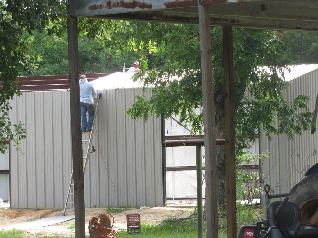 No pic today, yall got the idea. Just an up date. Got all the siding on, and about 1/4 of the roof. Boys are in summer school, and only work about 2 1/2 to 3 hrs day. Kant wait to get thru!!