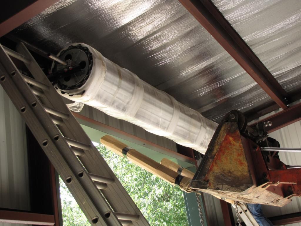 Another view of the crane. I Rigged it so I could move it for the next sheed with ropes from the ground. Ladders really hurt my feet.
