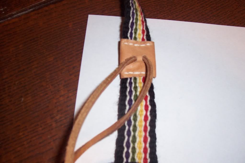 Well Swede I'll tell you my preference is a woven strap, but then I'm a bit prejudice I weave so just to let you know there are many ways to attach a horn to the strap but using the fringe is probably not the way to go (voice of experience). The easiest way I have found is to find a strap you like stitch a small square of leather with two holes in it and a leather thong sticking out.