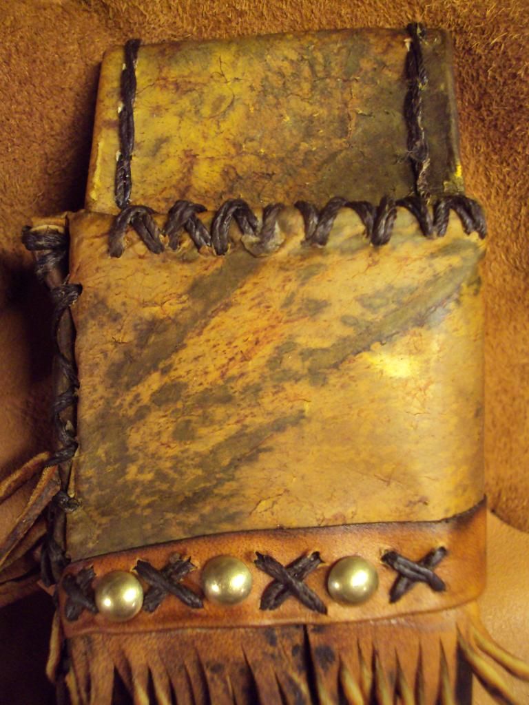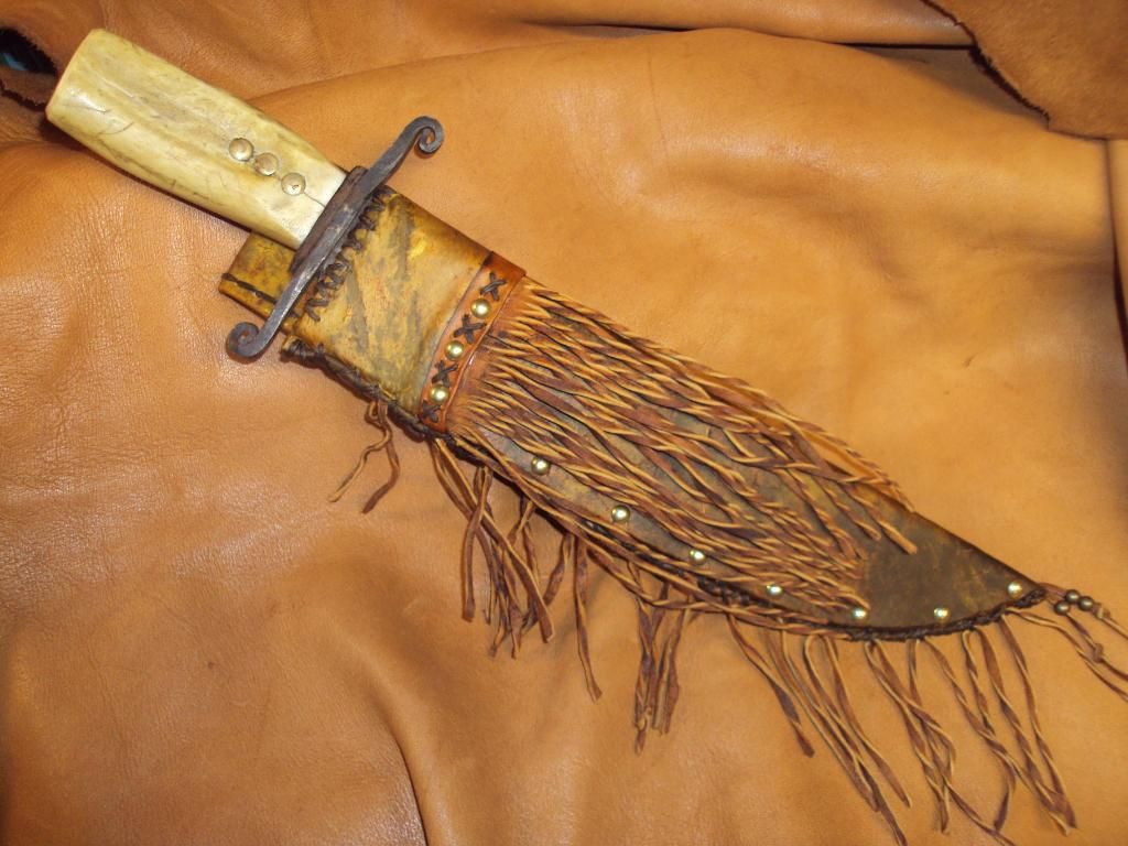 Needed some hides fora buddy's Possibles Bag. So........I couldn't find any I liked, but I Rendezvous buddy had some. We worked a trade, one of my sheath's for his hides.  Not a bad trade. And the knife is pretty badass too.