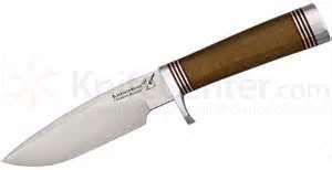These are near-copies of the Randall #5 Camp And Trail knife, which to my way of thinking is the perfect hunting knife except for the minor details of a $360 price tag and a several-year wait to order a new one straight from Randall (used ones for sale tend to run much, much higher). The blades of the Blackjack versions are hollow-ground A-2 tool steel, 1/4" thick, the price somewhat less than half what a Randall runs. Soon....