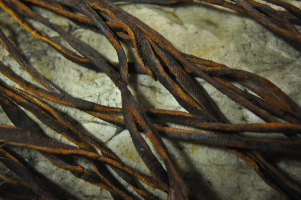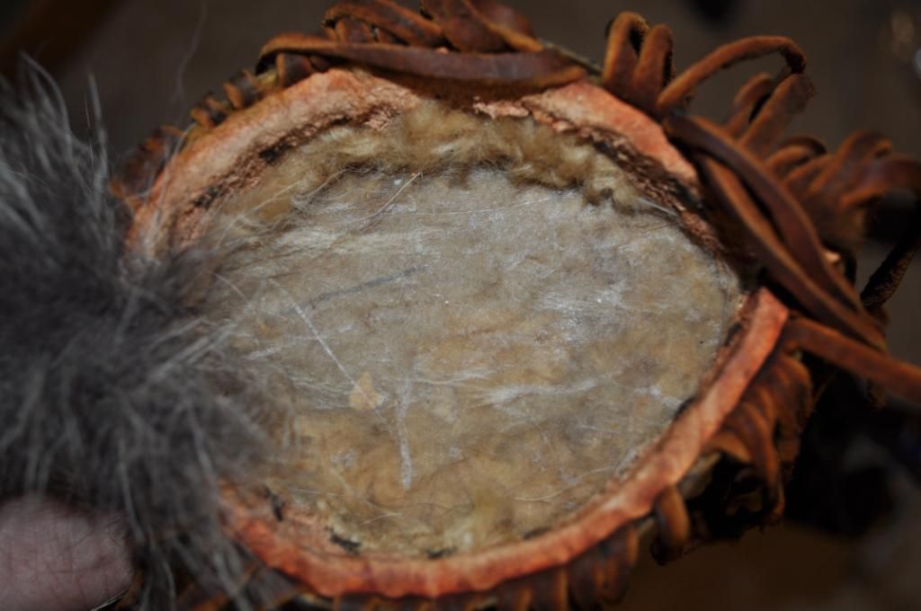 The bottom, is a layer of very thick elk rawhide, covered with 2 layers of sheep's skin wool on. And it's just wedged in there so it can be replaced with new if ever needed.