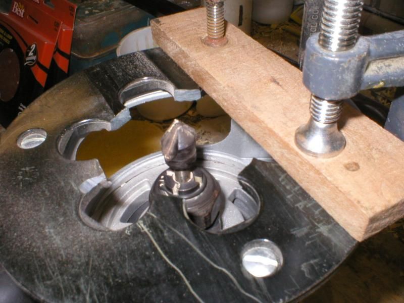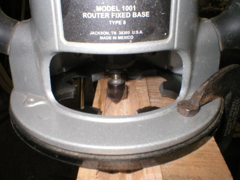 It will be noted that the center of my router seems to be missing. I removed it to give me full visibility of the bit contacting the wood. A tool is only as good as the quality of work you can do with it, and if experience says to modify something -- modify it.