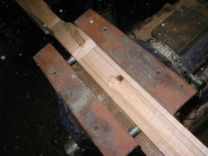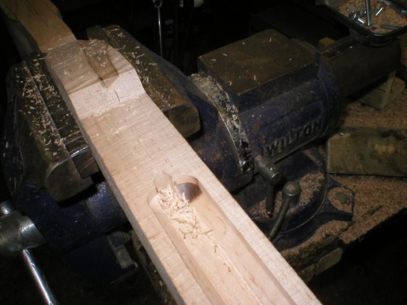 When working with maple in particular, but also with walnut, cherry, or other suitable gunstock (or furniture) woods, don't go "on the cheap" with router bits. Buy carbide and train yourself not to wince when you see the prices, particularly of the roundovers. High speed steel bits cost a fair chunk of change, too, and on a really hard chunk of curly maple you will fry at least one HSS bit before getting the barrel channel cut. Carbide is expensive because it lasts.