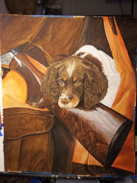 Wow DaveHawk, that is sooo beautiful and realistic. I can feel the coolness of that gun stock against my cheek and my fingers are just itching to scratch those curly ears. Bravo, real artists spark real emotions with their work and you have accomplished that to perfection. Thank you for sharing! thmbsup thmbsup thmbsup thmbsup