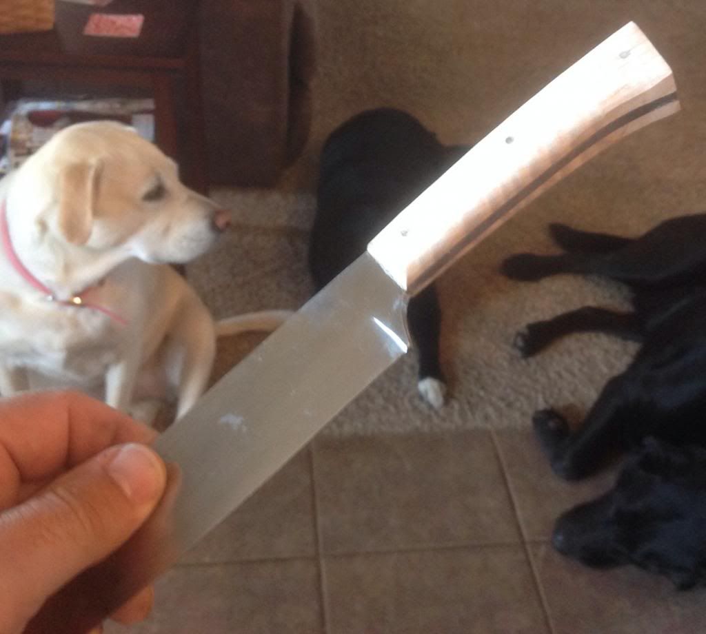 Seems my grandson also needs to be outfitted with a bigger knife or two.  He took one of my scratch built general purpose  4"blade ones home after last years camping trip, but now after the winter national where he left with a new hunting smock, centerseam mocs, drop front wool pants, and throwing hawk-- he thinks he needs a big knife.  Can't argue with a 13yr old who is getting into this BP stuff with both feet.