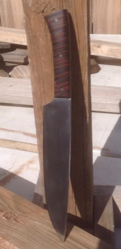 The blade is the Combat High Carbon Steel Blade from Atlanta Cutlery for $15.95 the slabs are from track of the wolf an the pins are the shafts of worn out Dremel tools.