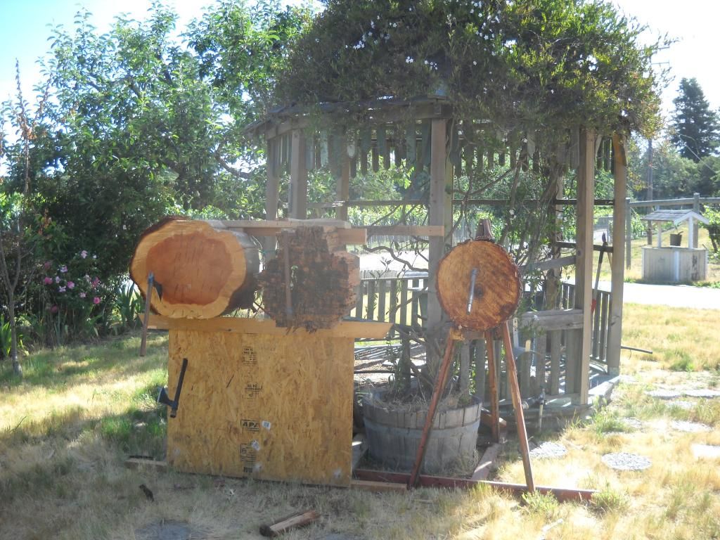 Redwood round, redwood 4X4's, pine in the rebuilt throwing line.
