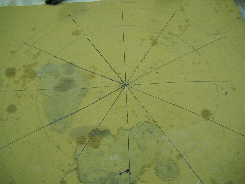 While Bruce's main body is hanging out to dry, literally, it's time to start on the "made from scrap wood" half scale #1 Field artillery carriage. Since there is no way in the world I am going to pay the going rate for a 30" wagon/cannon wheel (Cheapest I could find $145.00 each plus shipping) I am doing it myself. And since my tired out brain can't figure out the math for 14 or 17 spokes, it will have 12 on each wheel. It all starts with a plan.