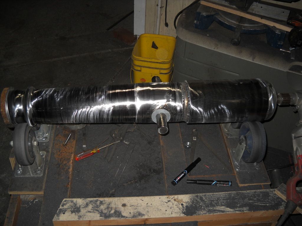 I tend to get tunnel vision and it prevents common sense from entering my poor overworked brain. After an entire  10LB roll of wire, a tank of shield gas and close to $60 in sanding disks, it finally dawned on me that this weld and grind of foil thin metal was just an exercise in futility and I was just creating a whole bunch of iron filings that get everywhere. So off to the local steel yard and dropped another load of $$ and got some more pipe and started cladding the outside of the neverending cannon project. The cruel rub is that now it will be much closer to the correct diameter for a true half scale 1841 cannon.