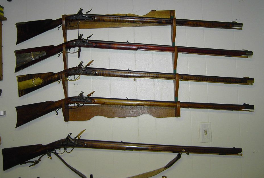 From top: l Lancaster .45, l Lancaster .40, .50 hybrid E Lancaster/York/ youth rifle, .36 SMR, .62 smoothbore.