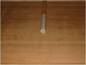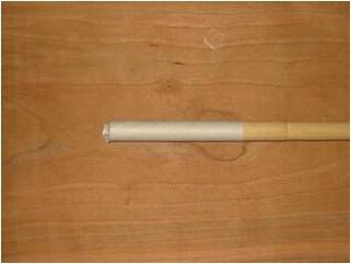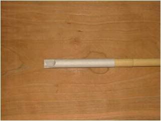 Place a mark on the dowel 4 1/4 inches from one end. Mark the dowel with a pen or pencil all the way around. Hollow out the end of the dowel closest to the mark you just made (this step is based on user preference).