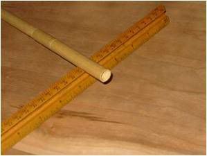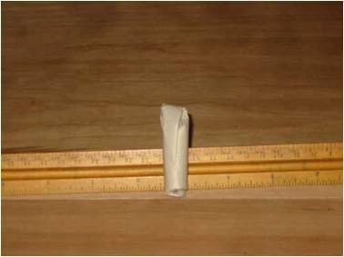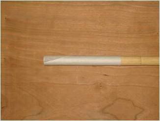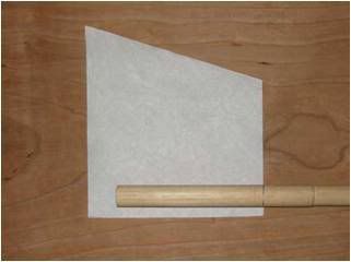 Position the paper with the widest part to your left and the shortest part towards your right, as shown below. Place the dowel on the paper, aligning the right edge of the paper with the mark you made on the dowel earlier.