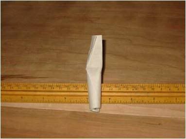 Place a crease in the tube close to the top of the powder. It's important to fold the paper over the diagonal edge otherwise you won't be able to secure the tab that you are about to create.