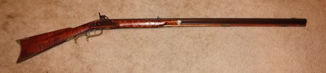 Ya'll seen mine once er twice, but here he is again. My Buck Whacker, or Ol' Buck is my favorite so far even though I ain't shot it yet. I just love the feel of it in my hands. He's a .45 with a Large 44" barrel and an original (I believe from research) M.M. Maslin flintlock. Just a sweet rifle. I have a Mongrel built .36 coming with a Montana 42" barrel, made is the John Armstrong style, so we'll see which is my favorite then... dntn