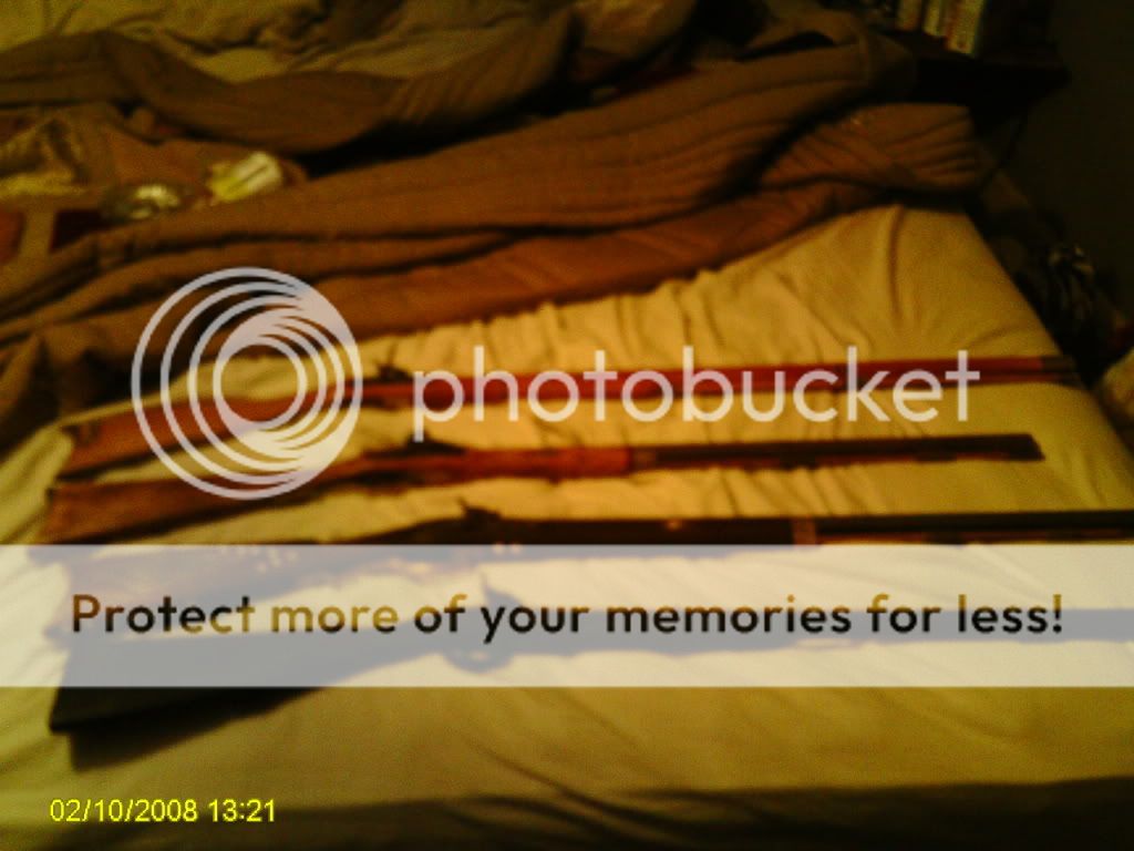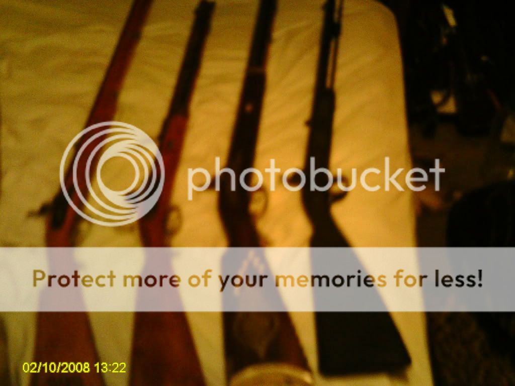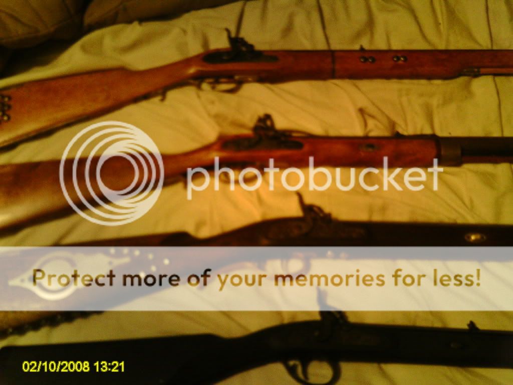 As with voyageur1688, I don't have one particular favorite. Whichever one I take out of the cabinet that day is my favorite. I've got a 36 cap CVA, a 45 flint kentucky style that I've been told by 3 different BP shop owners is an old Pedersoli w/a GM bbl ( I don't know or care. It fits right and shoots good.) a 50 flint kentucky style by Armsport, a 50flint PA pellet by CVA (loaded only w/loose black) and an old CVA flint 50 that I fixed so that I can also shoot it as a caplock . One of these days I'm going to start working on a 54 CVA big bore kit that I bought off of feebay a few years back My wife has a 32 deerslayer by traditions and a CVA 50 bobcat cap. Plus 1 pistol, 2 revolvers 1 dbl bbl caplock shotgun, and a 69 Charleville replica w/bayonet (now that's a longarm) that I haven' had time to try yet. How do you pick a favorite out of that melange? ???